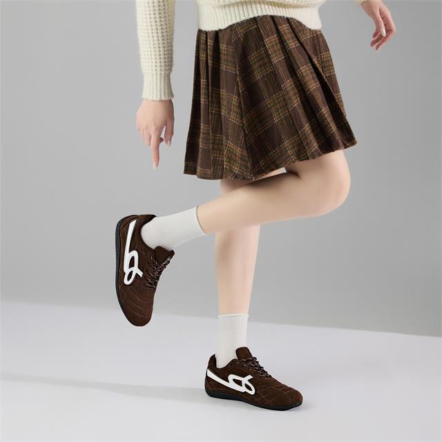 Giày thể thao dáng low-top, mũi tròn, thân ôm gọn bàn chân, tạo cảm giác năng động và thoải mái. Điểm nhấn nằm ở chi tiết logo dạng họa tiết uốn lượn mảnh chạy dọc hai bên thân giày.