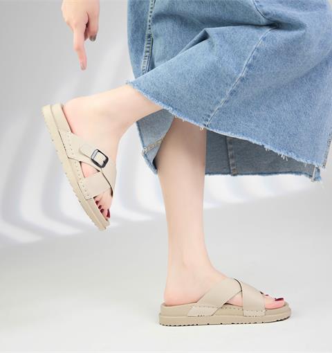 Dép được thiết kế với 2 quai chéo phối khóa lót dán,sử dụng chất liệu da tổng hợp thời trang.