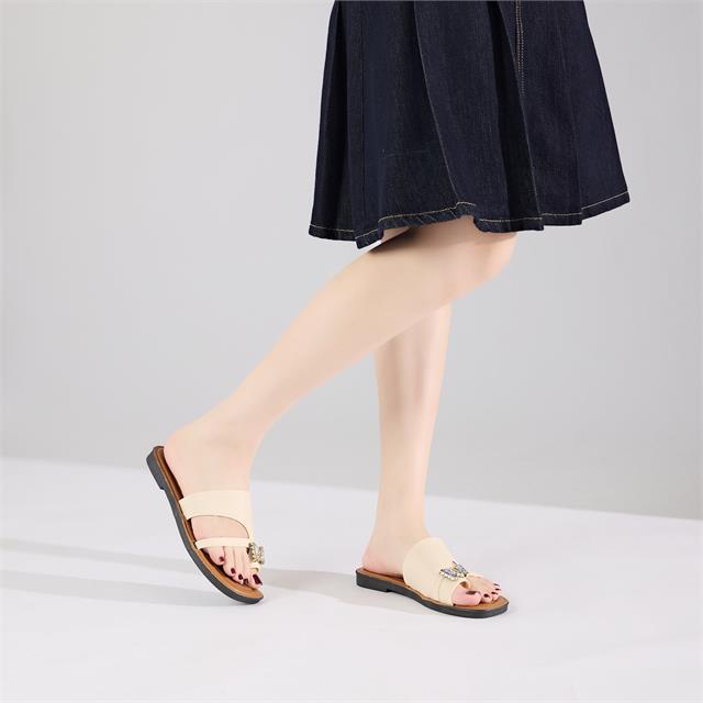 Đế dép bằng có xẻ rãnh chống trơn trượt, dễ đi, dễ phối hợp với nhiều trang phục khác nhau từ chân váy, quần jeans hay sooc,.. đều rất hợp thời trang tạo nên nét đẹp trẻ trung, năng động cho người mang.